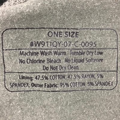 Outer fabric: 95% Cotton 5% SpandexLining:47.5% Cotton 47.5% Rayon 5% Spandex