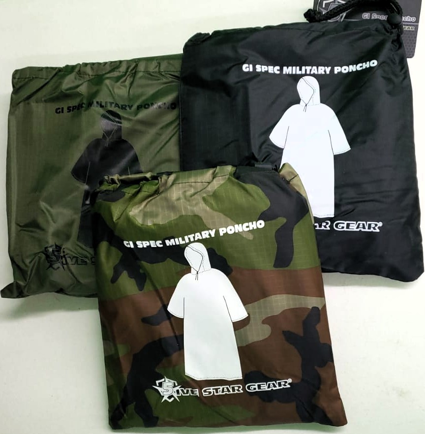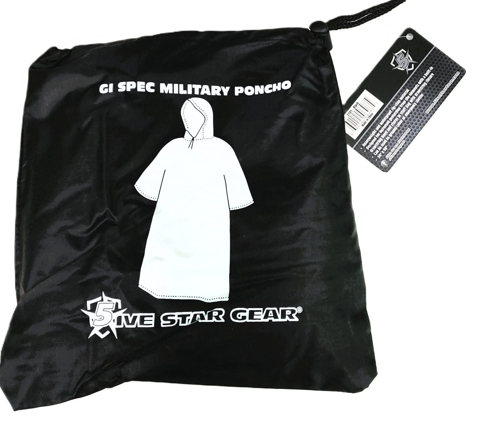 GI Spec Military Poncho – 5ive Star Gear – 56″ x 90″ – In stuff bag with drawstring closure