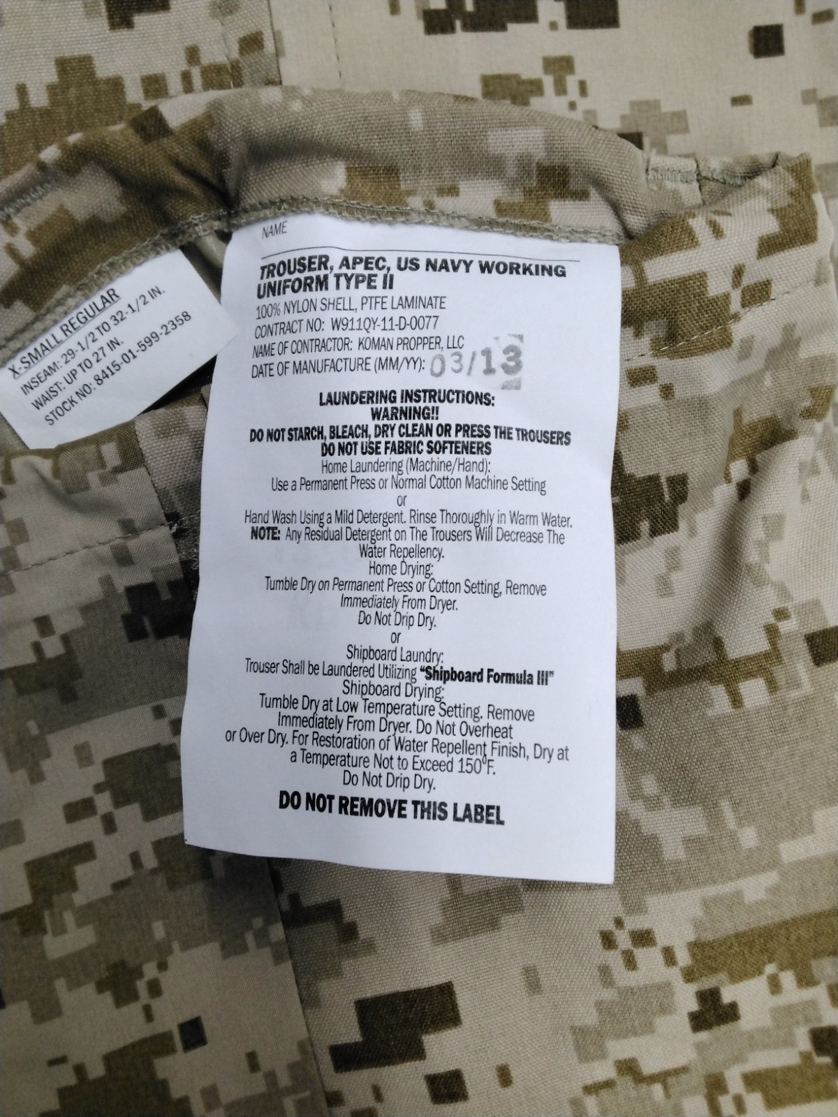 GI US Navy SEAL DEVGRU NSW Gore-Tex Pants TYPE III AOR1 Marpat Desert Digital