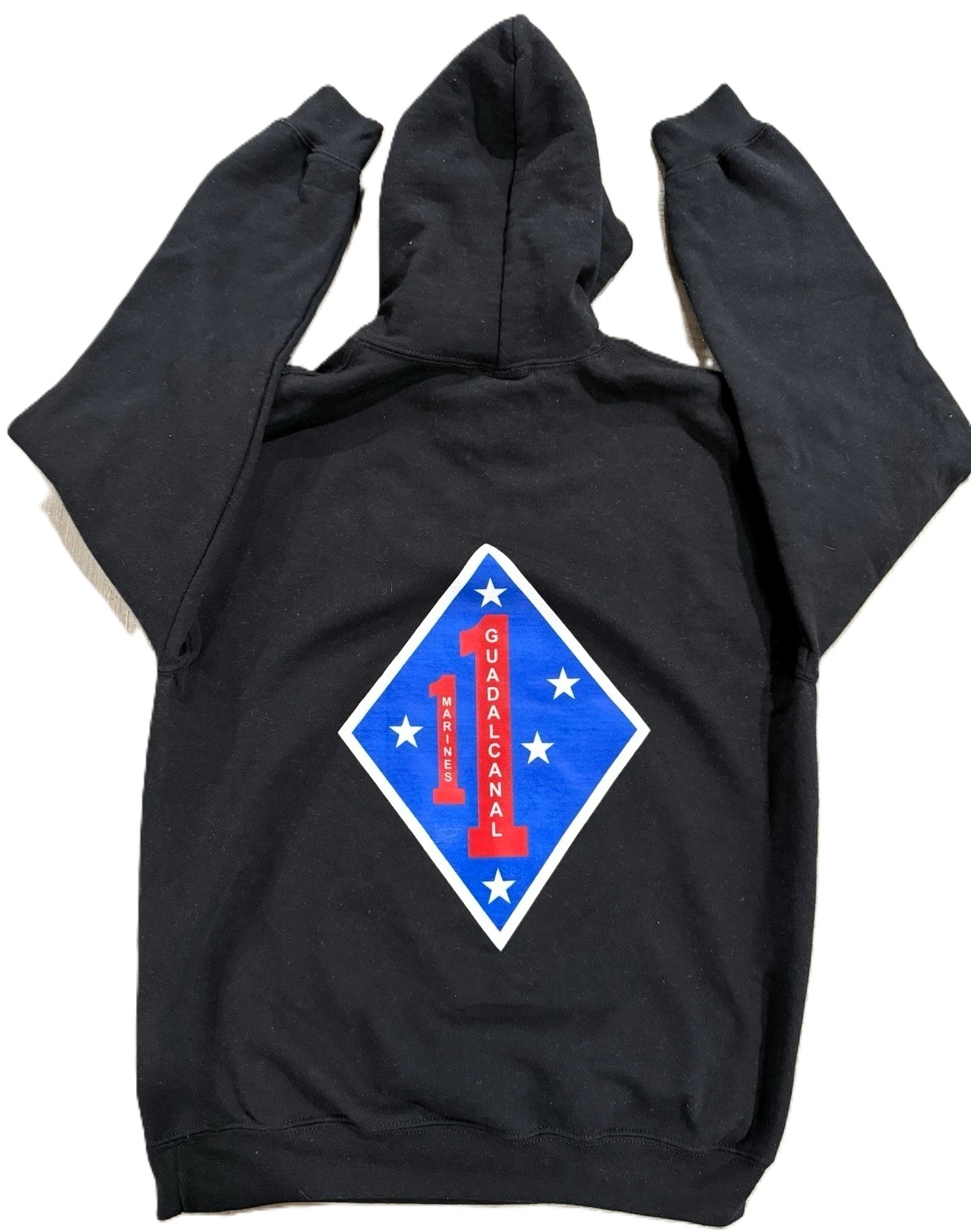 About our Marine Sweatshirts, the 1st Marine Regiment hoodie is always a great choice. This Marine Corps hoodie is made of a 50/50 cotton/poly blend and is spill-resistant. In your effort to satisfy your Marine Corps sweatshirt needs, the hoodie will not disappoint.