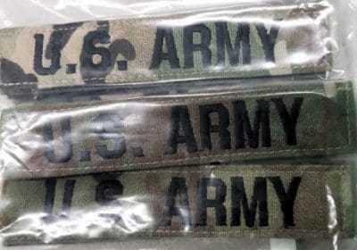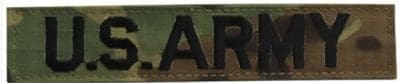 U.S. Army embroidered on Operational Camouflage Pattern uniform (OCP) material with hook closure for Army Operational Camouflage Pattern uniform (OCP). Price per a 10 Pack