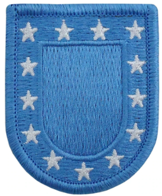All other units use a standard pale blue flash bordered with 13 white stars. Officers wear their rank insignia within the flash, while enlisted ranks wear their distinctive unit insignia.