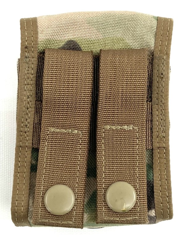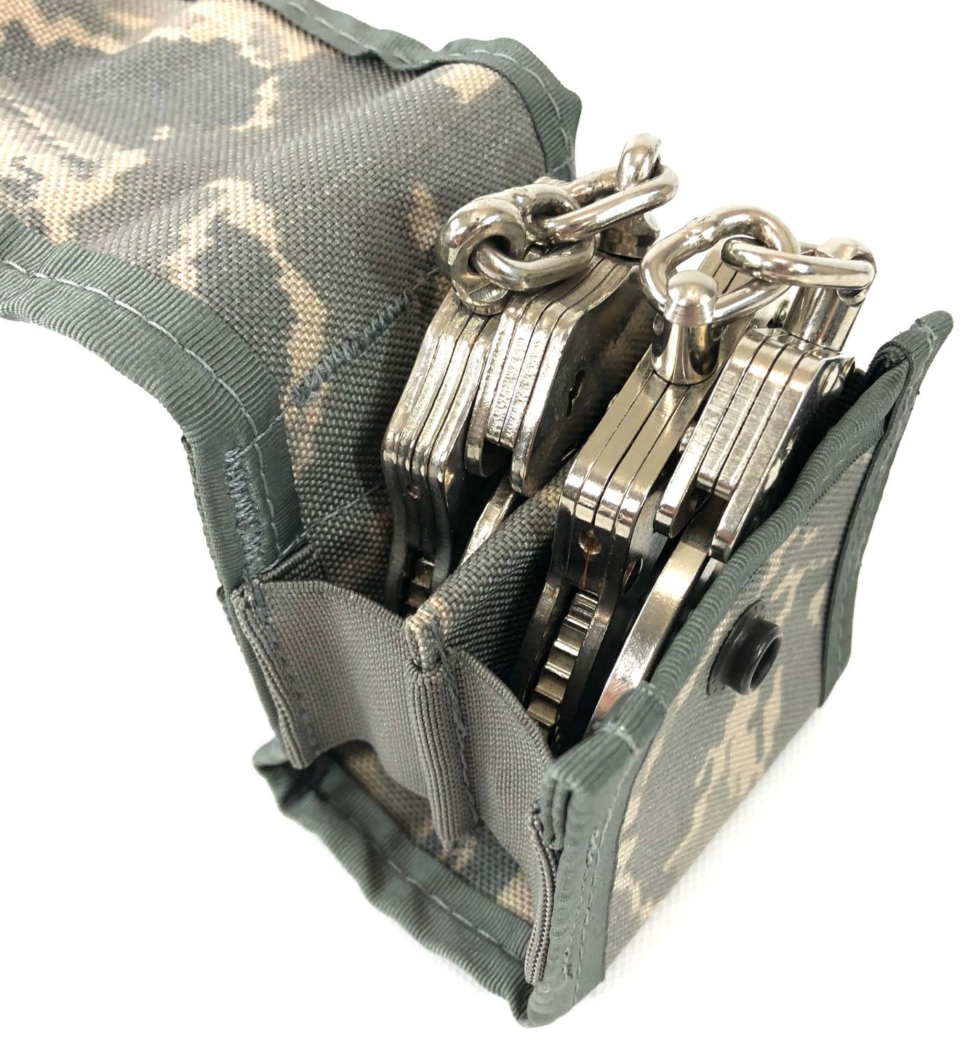 This is a double handcuff pouch that was used in by the US Air Force (USAF). The pouch holds two sets of handcuffs securely with a button snap flap. The divider keeps the handcuffs separated. Also, you can mount this pouch to any MOLLE compatible surface.