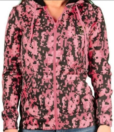 Women’s Fitted Hoodie Sweatshirt with Full Zipper Pink Digital Camo